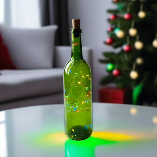 Green Wine Bottle with Colored Fairy String Lights, 750ml, Battery Operated Lights - DIY Projects and Décor