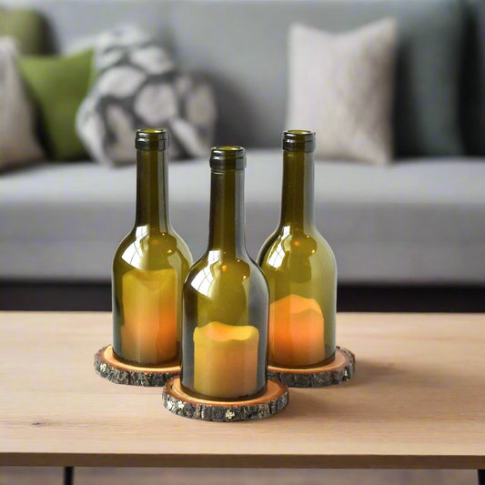 Cut Wine Bottle With Rounded Edges | Unique Decorative Candle Holder - Great For Home Decor, Parties & Centerpieces