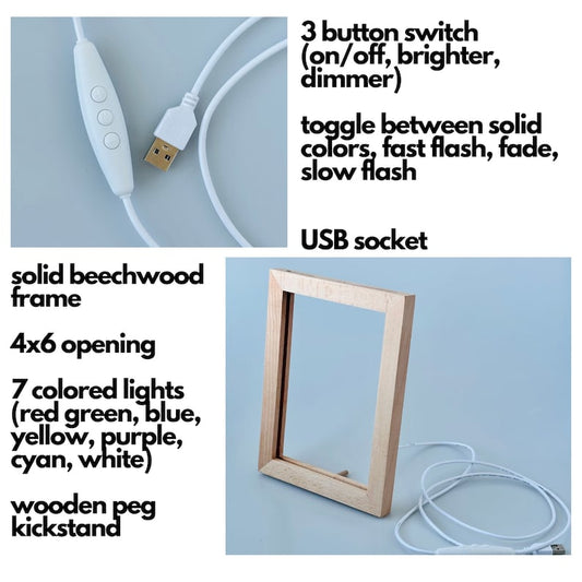 DIY LED Color Changing Lighted Wood Frame with Blank Acrylic Panels, 7 Color Changing LED Lights - Craft Ready