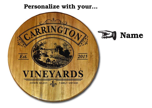 Personalized Clock, Vineyards Barrel Head Clock