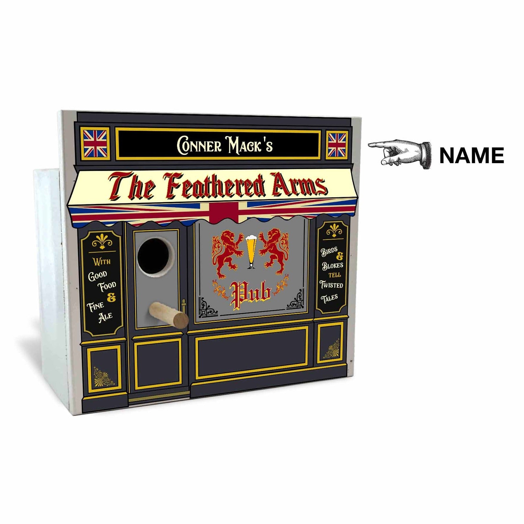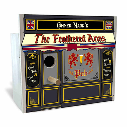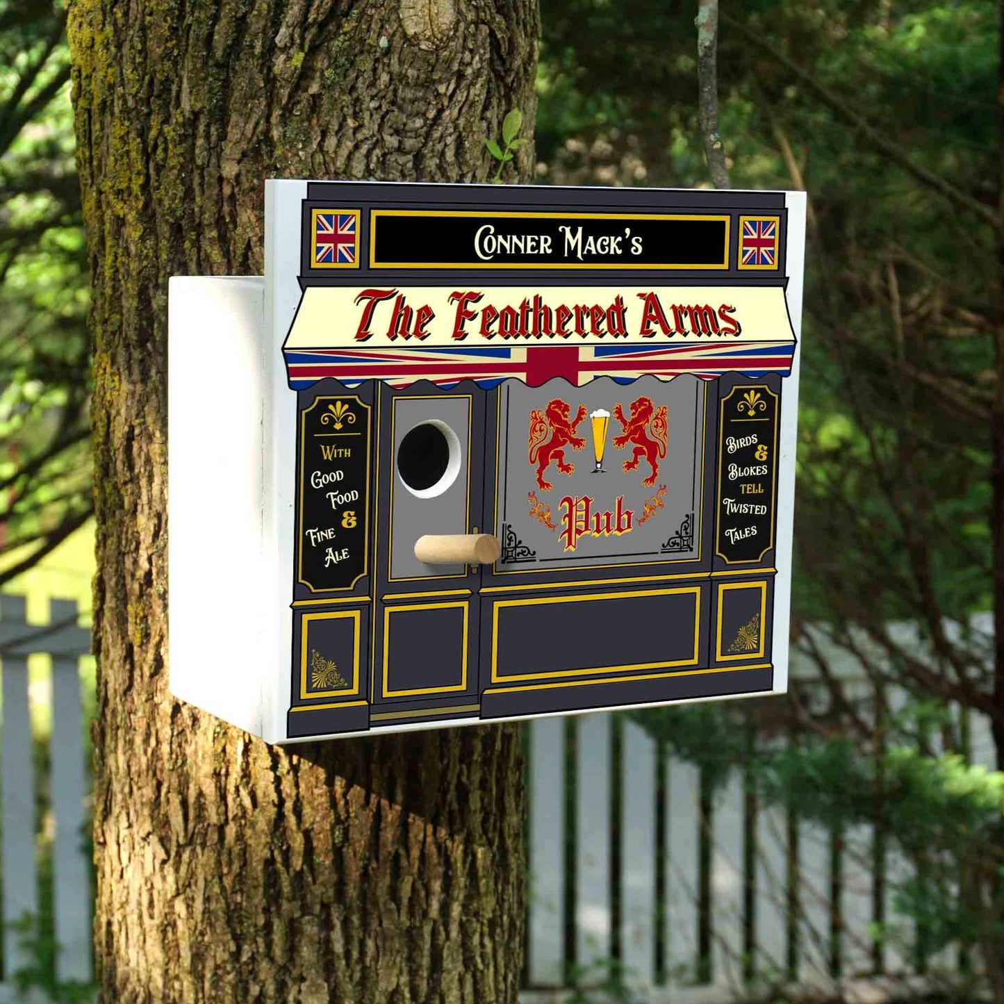 Elevate your backyard ambiance with our Personalized Birdhouse Pub Nesting Boxes, reminiscent of quaint English taverns. These charming nesting boxes evoke a sense of nostalgia and warmth, providing a unique refuge for birds to roost and socialize while adding a touch of old-world charm to your outdoor space.