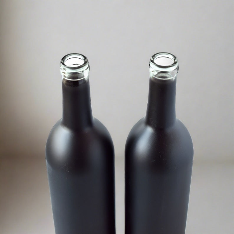 Elevate your crafting and decor projects with our premium Empty Flat Black Wine Bottles! Crafted with care and sophistication, these bottles are perfect for unleashing your creativity. Whether you're upcycling them into charming vases, eye-catching centerpieces, or as dynamic additions to enchanting bottle trees and bottle bushes, the possibilities are endless. With their sleek design and rich, sophisticated color, these bottles add a touch of elegance to any space or occasion. Let your imagination run wild with our Empty Flat Black Wine Bottles today!