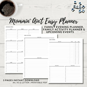 Mommin' Ain't Easy, but planning helps! Time flies when you have a family, this printable planner is designed to help you make sure you are taking advantage of every moment together.