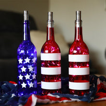 Patriotic Wine Bottles with Fairy String Lights, American Flag Wine Bottles Decoration