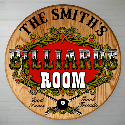 Introducing our stunning 21'' Personalized Barrel Head Sign, a masterpiece handcrafted in the USA from authentic oak. This exquisite piece is more than just a sign – it's a symbol of craftsmanship and tradition, meticulously crafted to add rustic charm and personalized flair to any space.