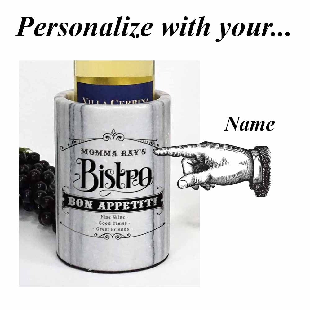 Our skilled artisans engrave your personalization, with precision and care, ensuring a stunning finish that lasts a lifetime. Not only does it elevate the aesthetic of any table setting, but it also provides the perfect temperature for your favorite bottle of wine, simply freeze you Bistro Marble Wine Chiller at least an hour before guests arrive and it will keep you wine bottle chilled to perfection for hours.