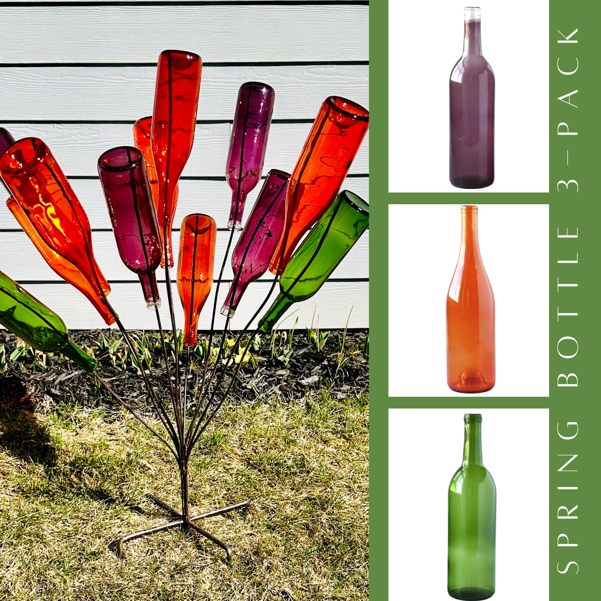 Elevate your crafting and decor projects with our premium Empty Spring Colored Wine Bottles! Crafted with care and sophistication, these bottles are perfect for unleashing your creativity. Whether you're upcycling them into charming vases, eye-catching centerpieces, or as dynamic additions to enchanting bottle trees and bottle bushes, the possibilities are endless. With their sleek design and distinctive colors, these bottles add a touch of elegance to any space or occasion. Let your imagination run wild with our Empty Spring Colored Wine Bottles today!